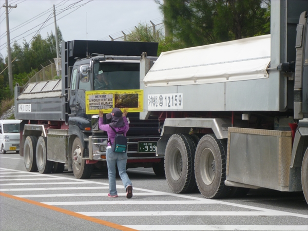 今日も、3回にわたって強制排除され、220台ものトラックやミキサー車が基地の中に入った。