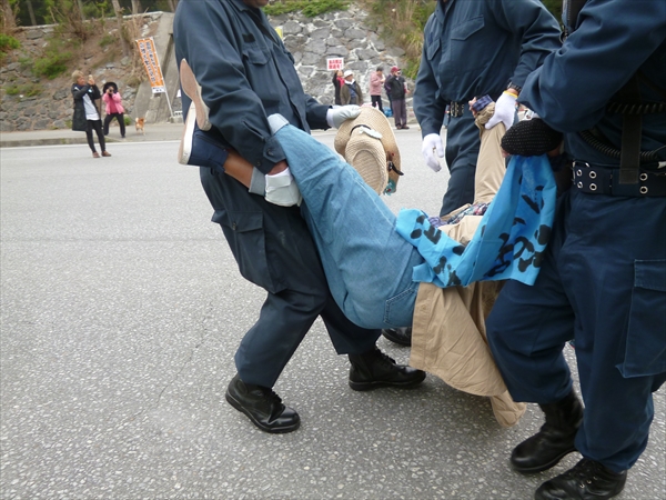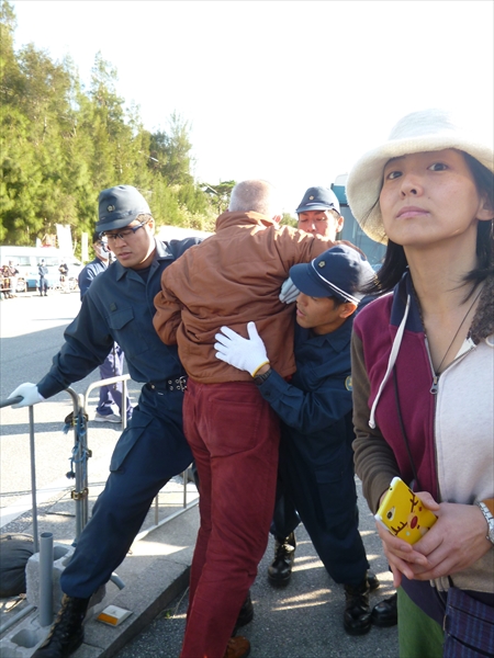 それでも二回目、三回目のごぼう抜きを強行する機動隊に「こんな重大な事故が起きて、子どもたちが危険な目にあっても、あなたたちは基地をつくることに手を貸すのか!」と、人々の強い抗議の声があがった。