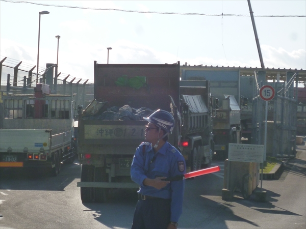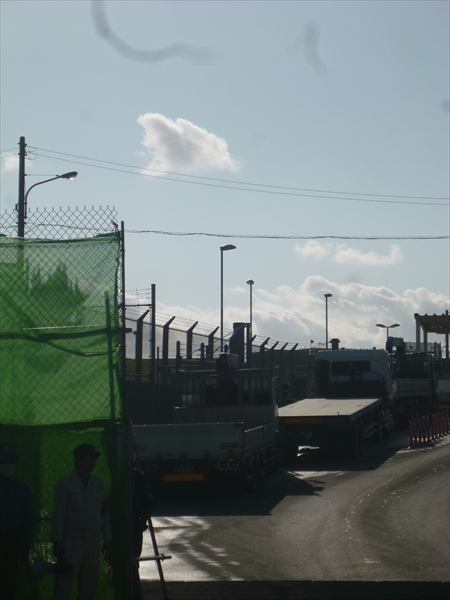 結局この日も3回にわたって260台余のダンプトラック、ミキサー車が基地の中に入った。