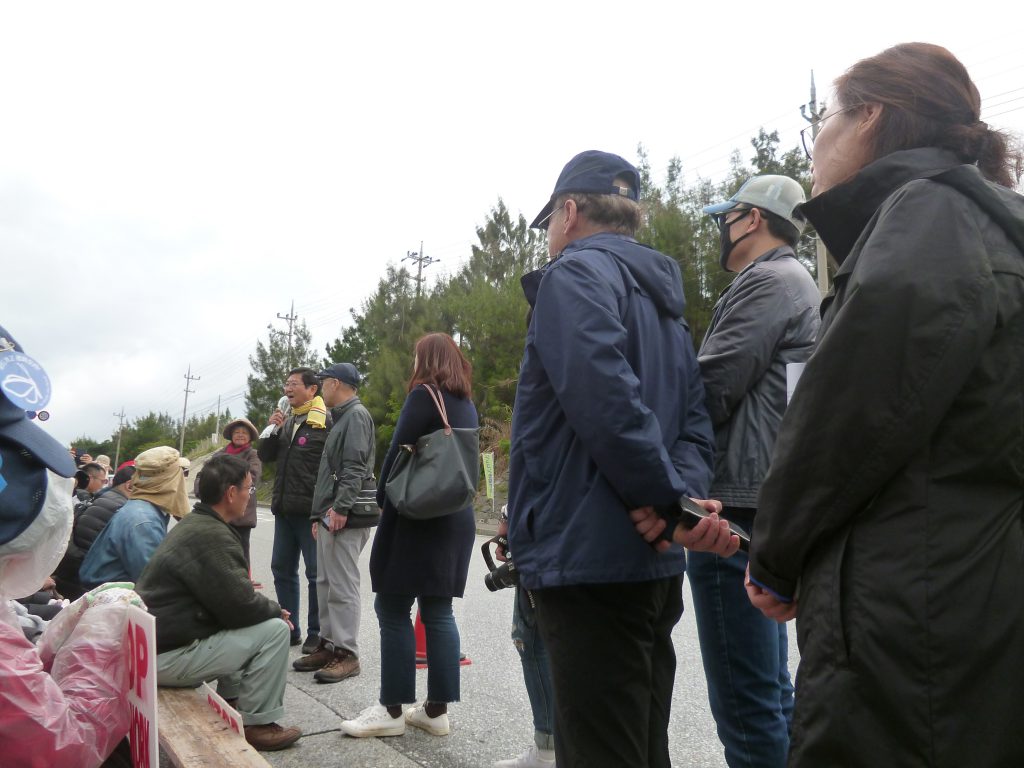 この日はまた韓国から歴史を学ぶ大学院の学生たちが辺野古を訪れた。韓国でも米軍基地に反対する運動が闘われており、平和運動の場で歌われている歌を披露して、座り込みの人たちを激励してくれた。