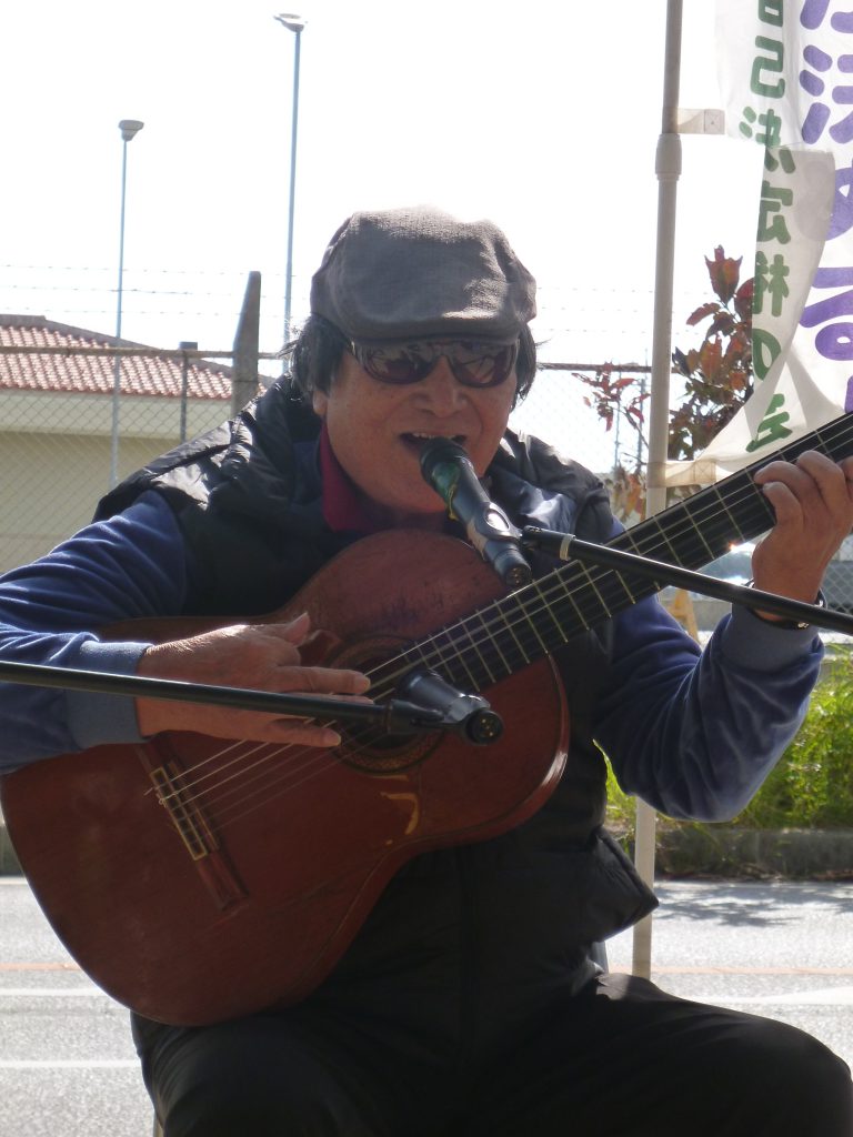 集会はまず、海勢頭豊さんの歌で開会。「沖縄の闘いは ずっと平和の闘いだった」と海勢頭さん。おなじみの月桃、喜瀬武原、やんばるの歌で集会を盛り上げた。