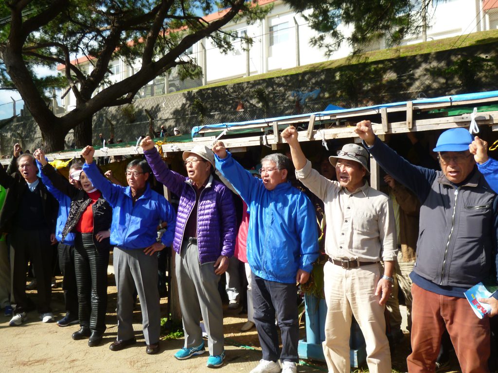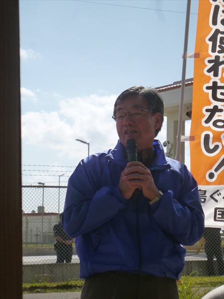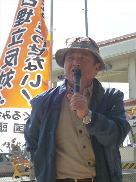 「これまで心を一つにして頑張ってきた皆さんに、名護市の行政を預かるものとして感謝します。いま、私たちの戦いは世界に広がっている。しかし安倍政権は、来年の名護市長選、県知事選を前に、県民を分断させようと、様々な手法で画策を行っている。いまここで頑張ることは、次の世代、子や孫のさらに次の世代のため、負の遺産は残してはいけない、その思いがみんなの心を一つにしてきた。これまでの闘いは大変苦しいものだったが、いまが正念場。名護市長選、県知事選挙を圧倒的に勝利して、日米両政府に改めて明確なNO!を突き付けて行こう!」とあいさつした。