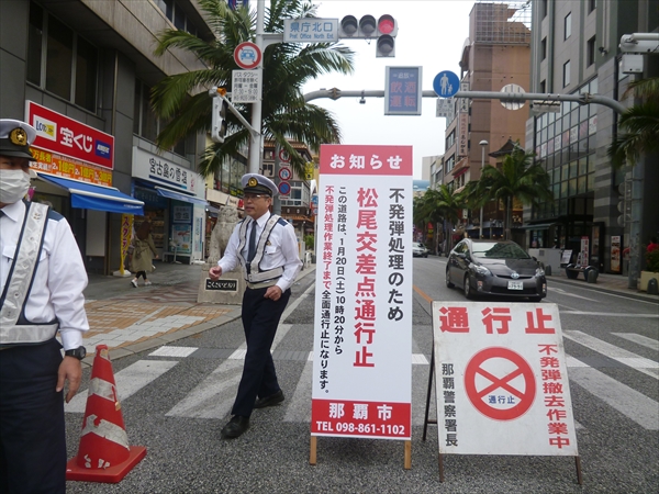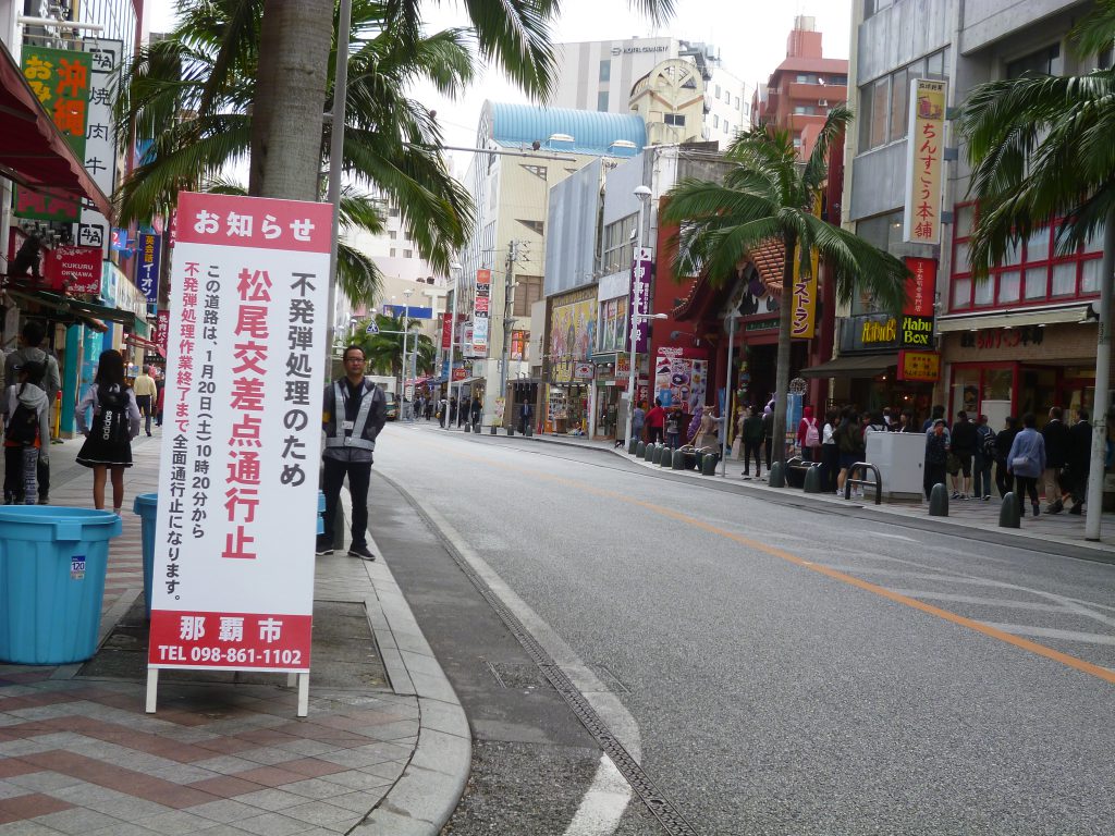 処理作業は予定より20分以上遅れ午前11時23分ごろ完了し、住民避難と交通規制が解除された。国際通りを封鎖しての不発弾処理は2004年、昨年9月に続いて3回目。