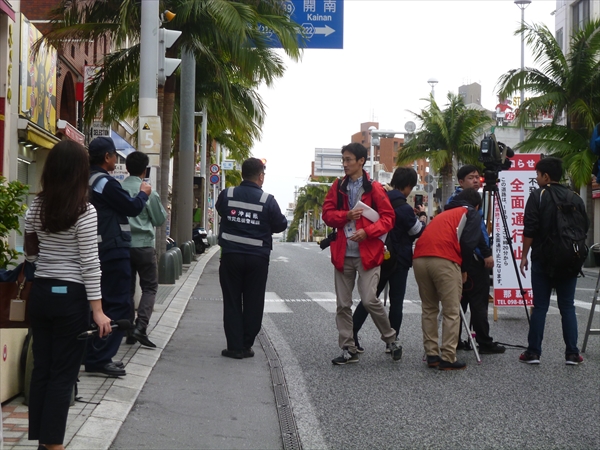 観光客で賑わう国際通り。物々しいい警備に外国の観光客もいぶかしげに「何事か?」と警察官に質問していた。