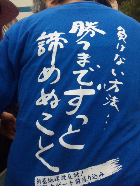 強大な国家権力に勝つには「あきらめなることなく、勝つまで闘い続けること」辺野古の闘いの合言葉です。