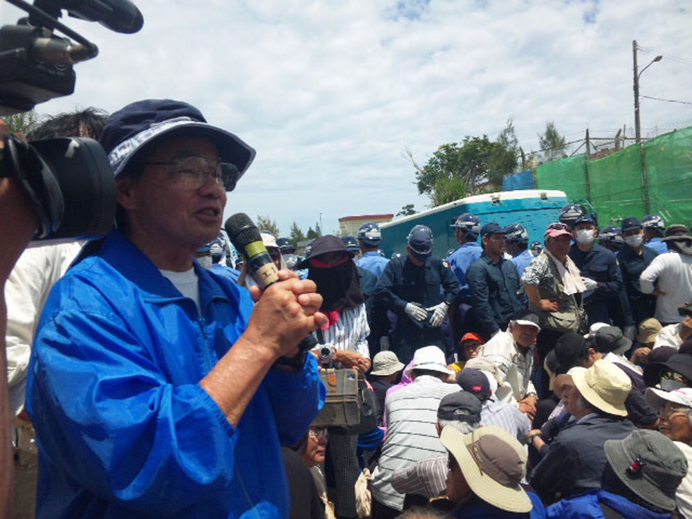 前名護市長の稲嶺さんも早朝から参加していたということで、促されてマイクを握り人々を激励した。