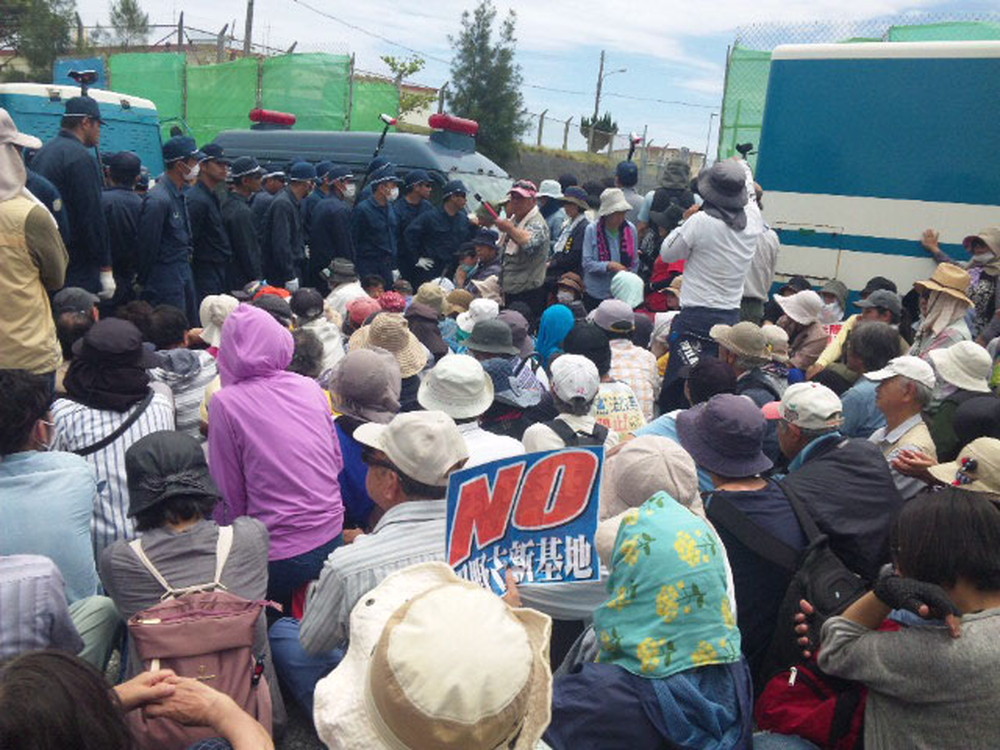 「連続6日間 毎日500人集まって、新基地建設工事を止めよう!」と市民有志が呼びかけた500人集中行動初日(4月23日)、県外からの人たちも含めおよそ700人が参加。座り込む市民と、排除しようとする県警機動隊の攻防は5時間余にわたった。