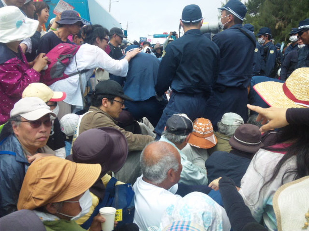 今回も、道路に座り込んでいる人々の後ろに、立ったまま抗議の声を挙げている人々やメディアの人たちがいて、さらにその背後から機動隊が人々を排除しようと押し寄せたため、立っていた人たちが将棋倒しとなって、座っていた人たちが下敷きになった。