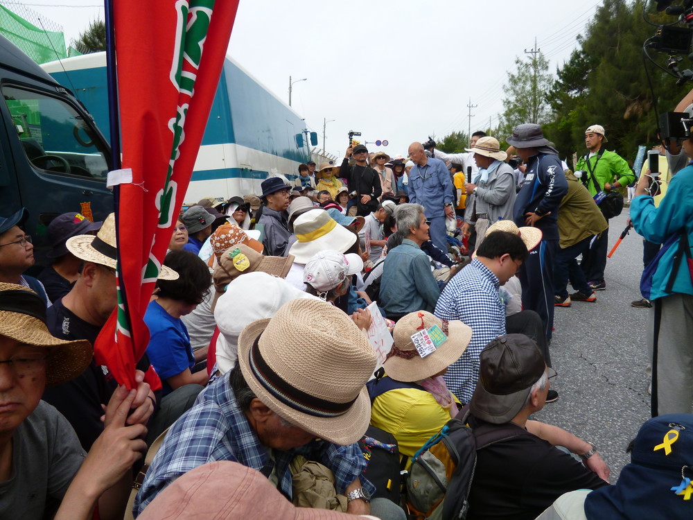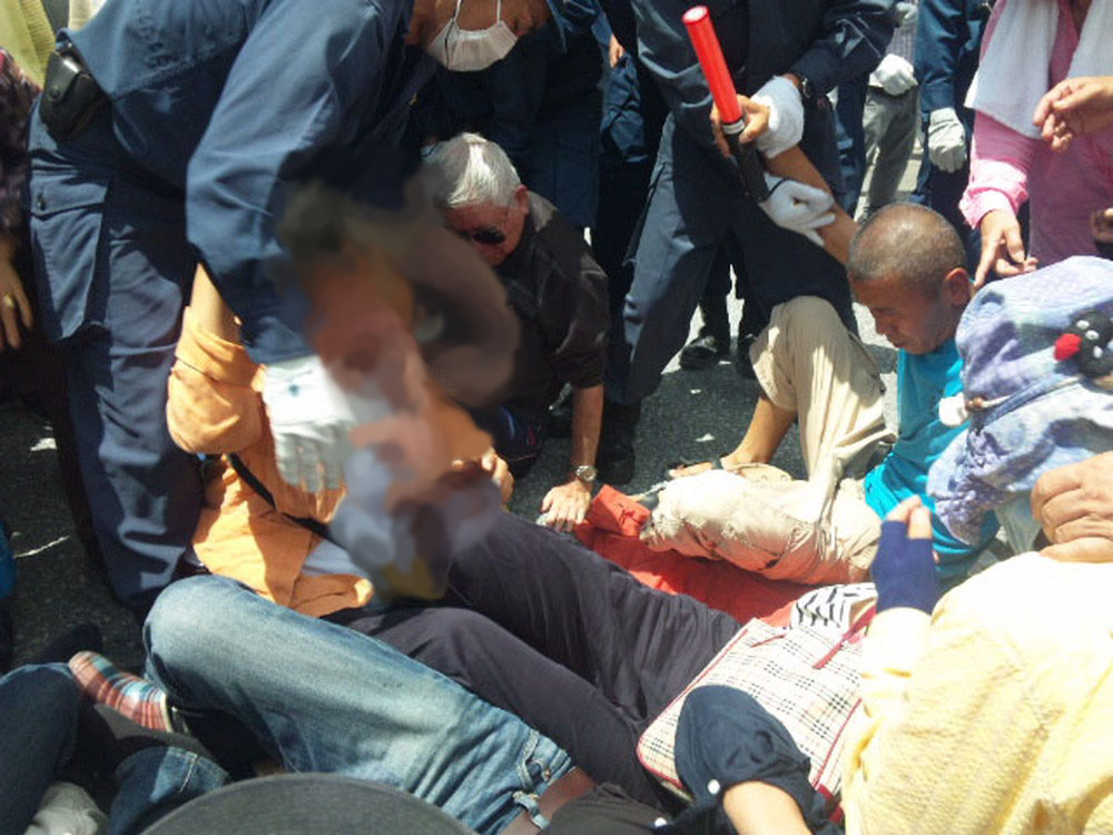 私はけがした女性につき添って救急車に乗りこみ病院に行ったため、ゲート前のその後の状況は、報道の範囲しか知らないが、最終的に700名以上の人々が座り込んだということである。