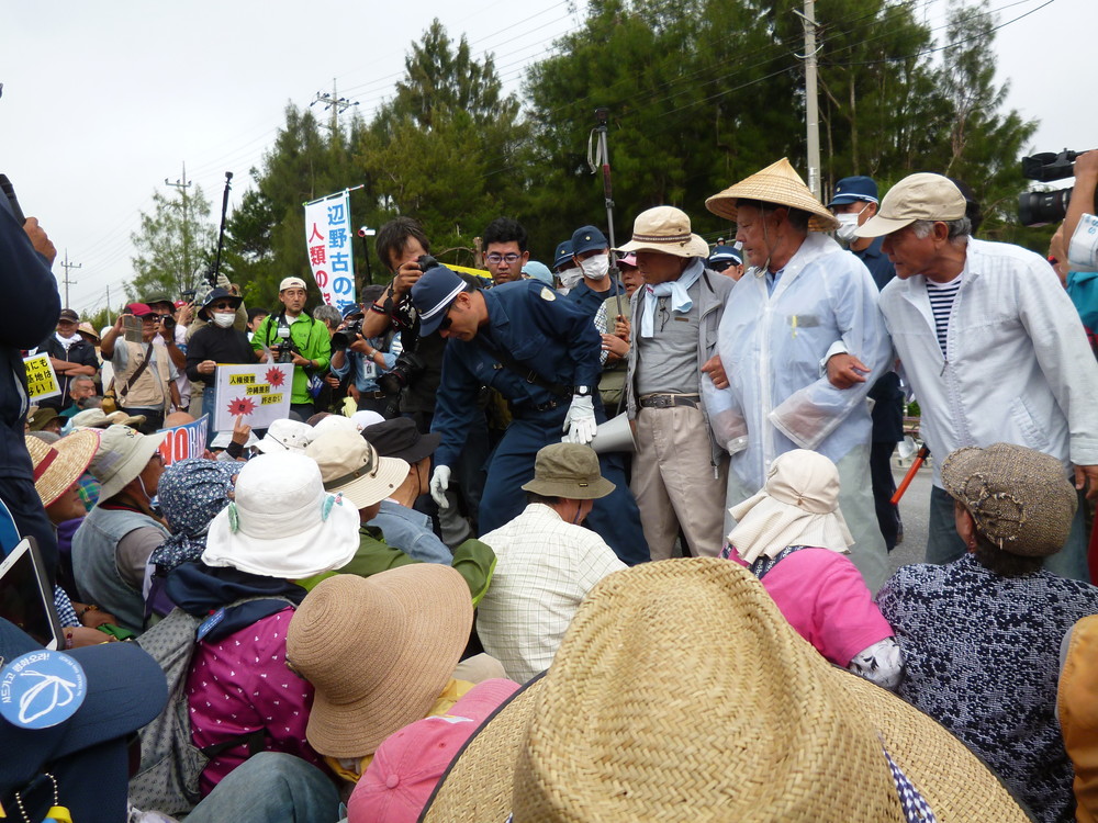 排除されても排除されても、次々と新たな人がやってきて、場所を変え座り込む人々。炎天下での長時間の攻防で体調を崩す人や、機動隊に押されて転倒したり、将棋倒しの下敷きになった女性二人が緊急搬送され、鎖骨骨折、ろっ骨骨折の重傷を負った。
