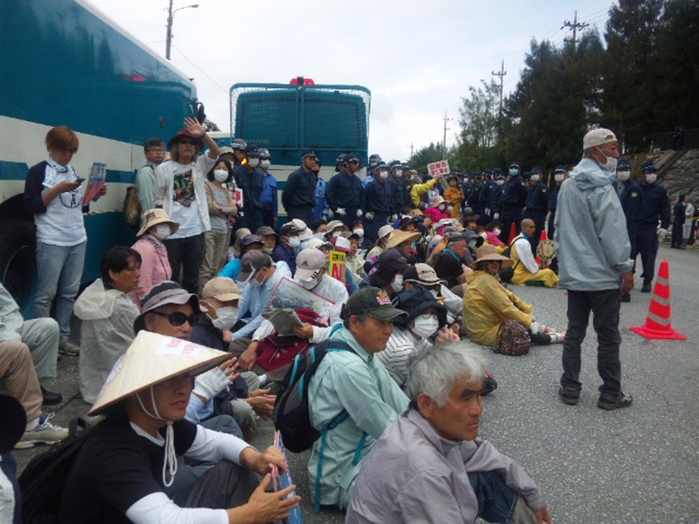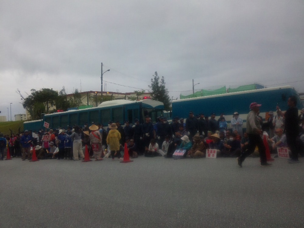 初日700名、二日目800名、今日も800名と県内だけでなく県外からも多くの方々が参加、平和市民連絡会の早朝バスも満席だった。平和市民連絡会では、6日間行動の期間中、毎朝6:30那覇発の大型バスを運行中。