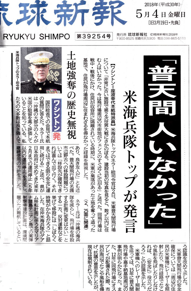 そんな沖縄ヘイトに、さらに米海兵隊のトップが、意図的かそれとも無知かは知らないが、嘘の上塗りをし、ネトウヨを喜ばせている。