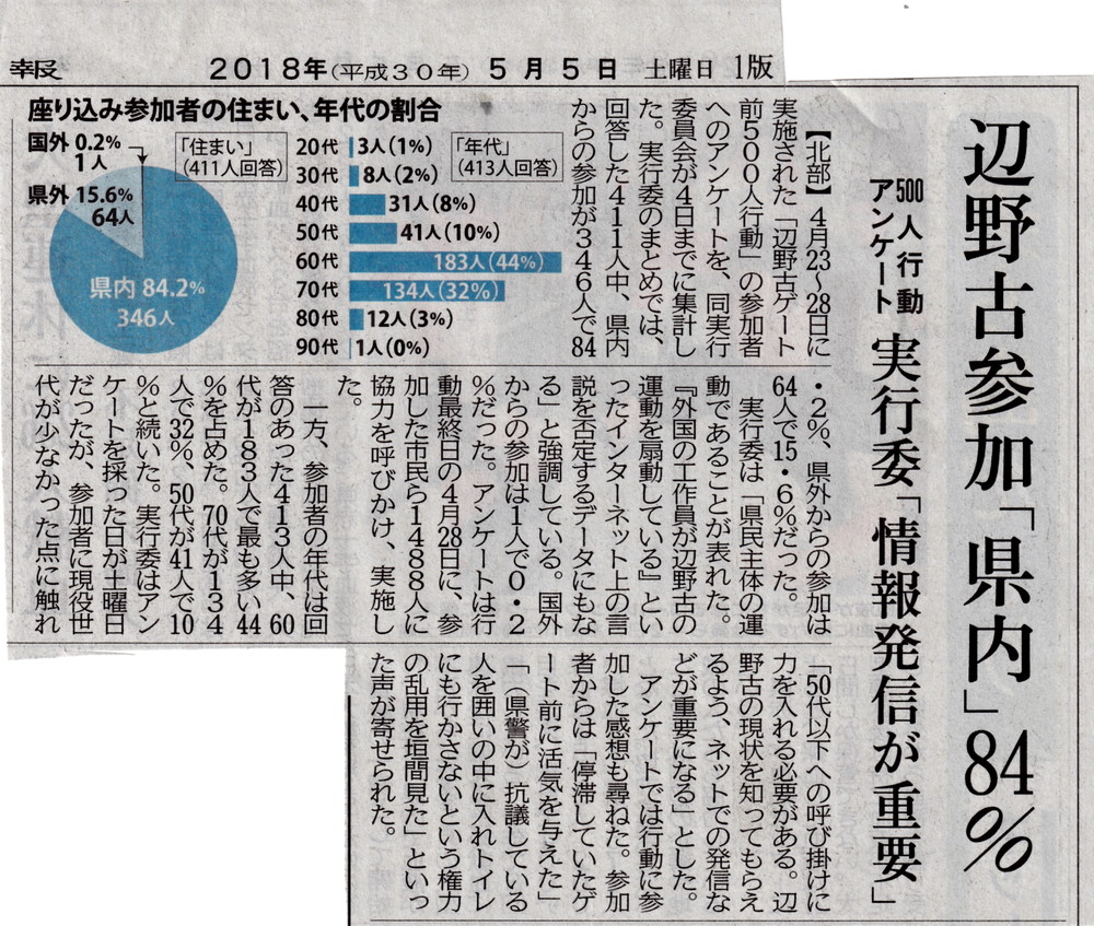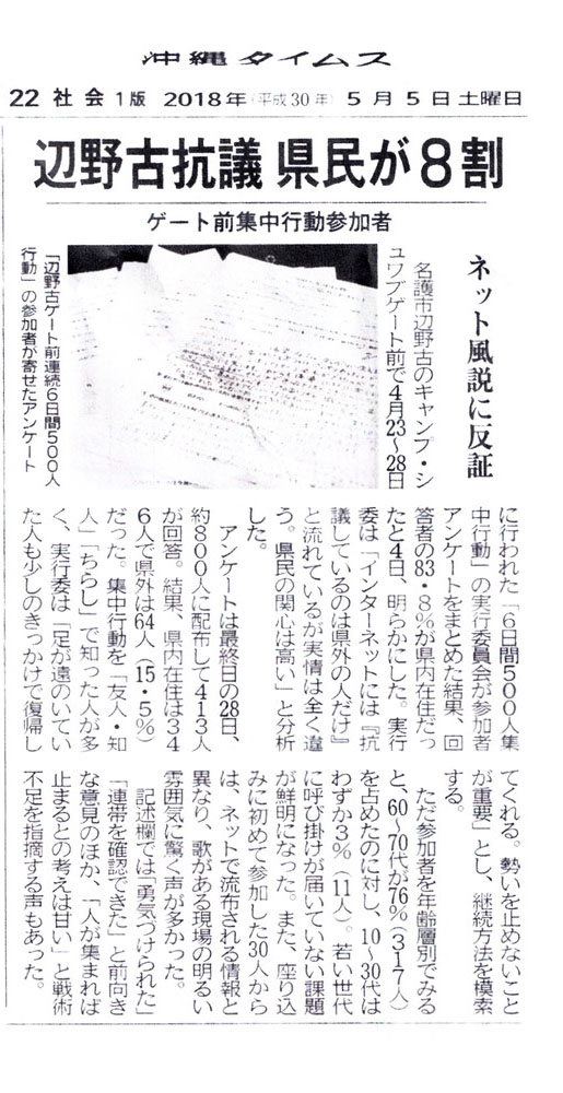 ネットで流布される典型的な沖縄ヘイトの「辺野古の座り込みはほとんど県外、外国の人で、沖縄地元の人は少ない」という悪意の言説を見事に跳ね返した。