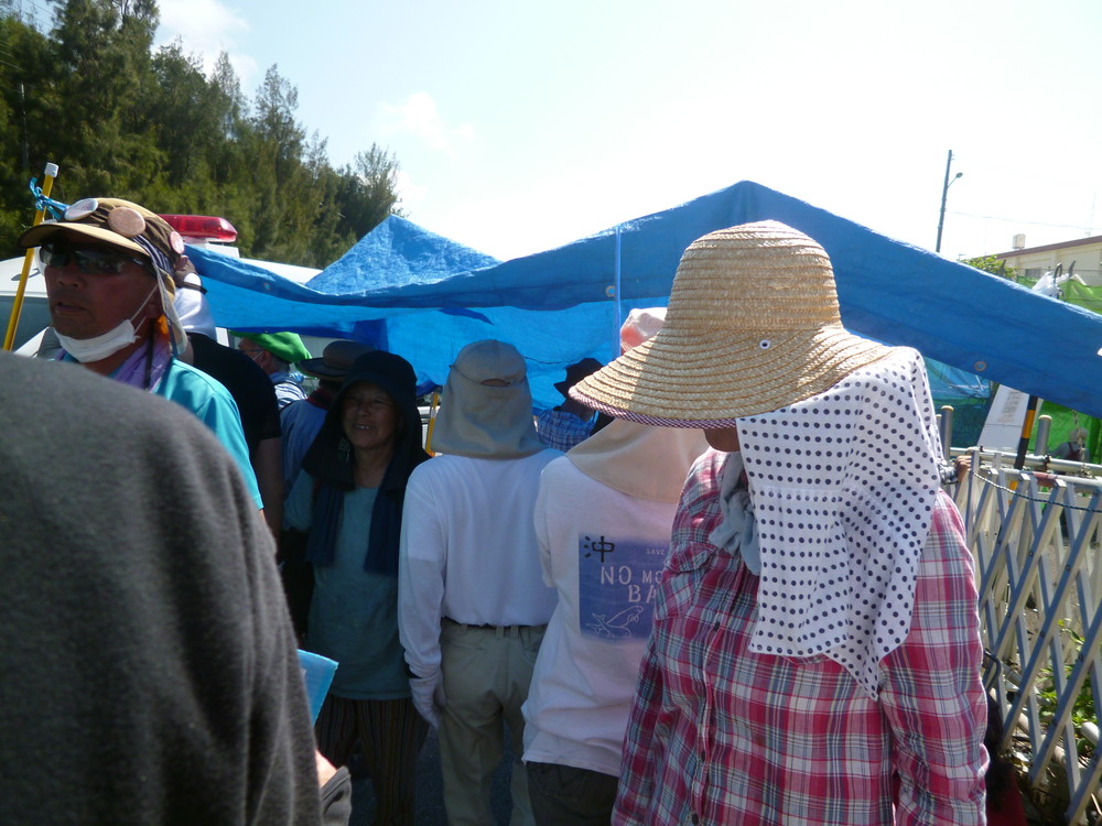 メインゲートで、一人でも黙々と座り続ける彼は、参加者最年長の95歳。沖縄戦で家族9人を失ったという。「戦争に繋がるものは絶対に許せない」と、毎日辺野古へ通う。