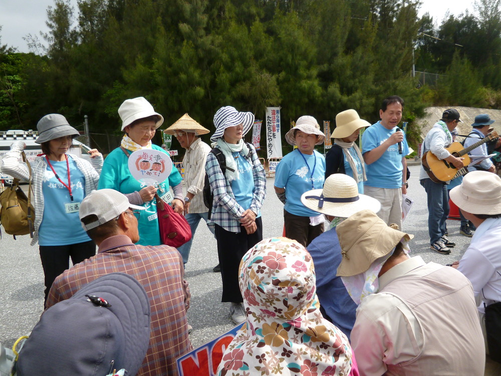 大阪からうたごえサークルのチーム「ちばりよー沖縄」の皆さん18人が参加。一昨年、高江で森の中に入ってオスプレイパッドの建設に反対したときにやんばるの森の豊かさを知り作ったという「山原の森の小さな命」という歌を披露した。