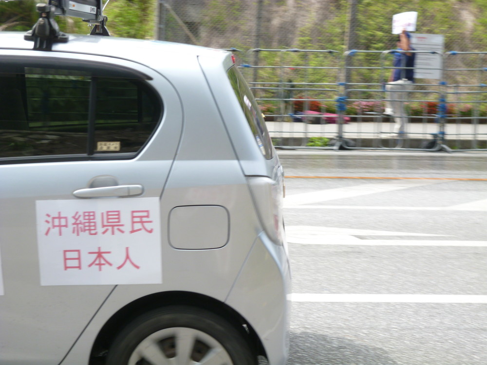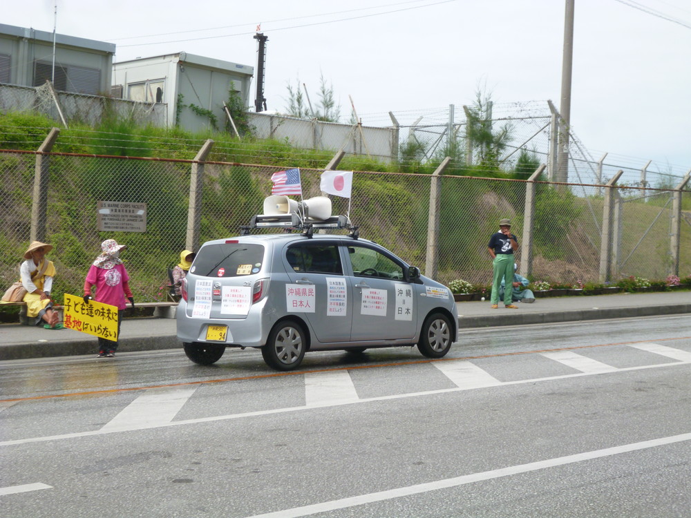 いつもは県庁前の繁華街を走り回って、沖縄ヘイトをまき散らしている右翼の宣伝カーが、今日は辺野古ゲート前を何十回も行ったり来たり。