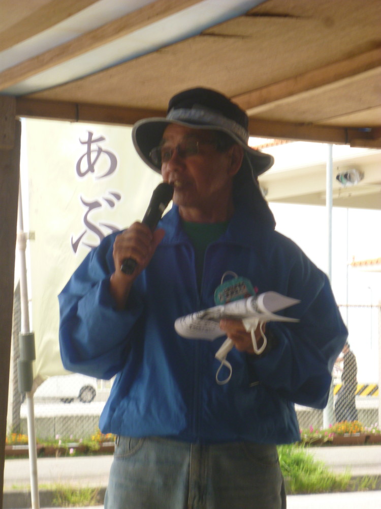 前名護市長の稲嶺進さん。一市民としてできる限り座り込みに参加する。そんな中でほとんど毎週県外へ出かけ、様々な集会で沖縄のことを訴えている。「全国から声がかかる。沖縄は孤立していません!」と、みんなを励ました。