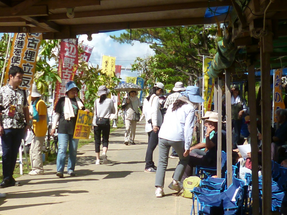 いつもは安部政権への批判で怒り渦巻くゲート前だが、今日ばかりは沖縄の明るい未来への展望を語る明るく前向きな話題でいっぱいだった。