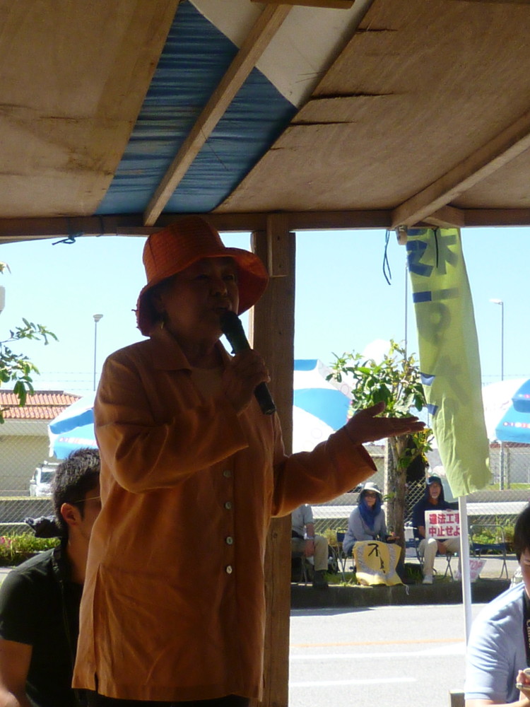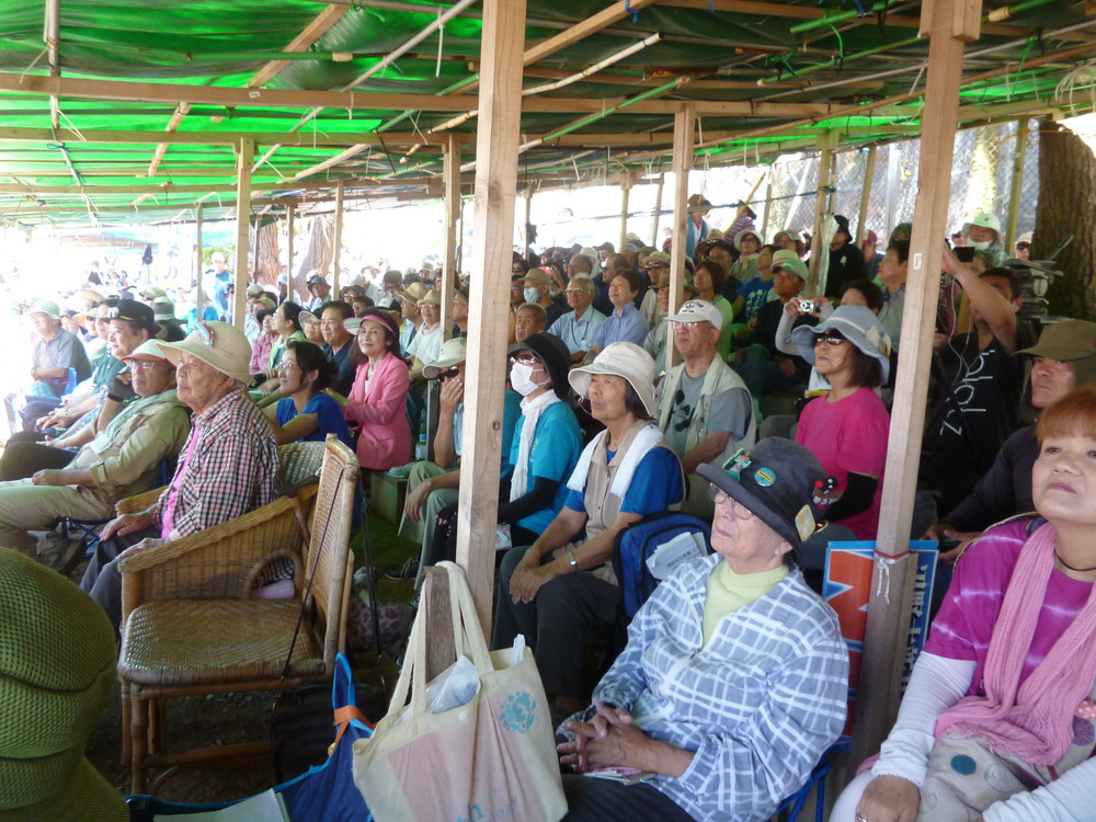 10時から集会が始まり、開会の挨拶に立ったオール沖縄共同代表の高里鈴代さんは「今日のゲート前は、いつもとまるで雰囲気が違いう。笑顔があふれ、たくさんのオーラが集まってきている感じがする」と。