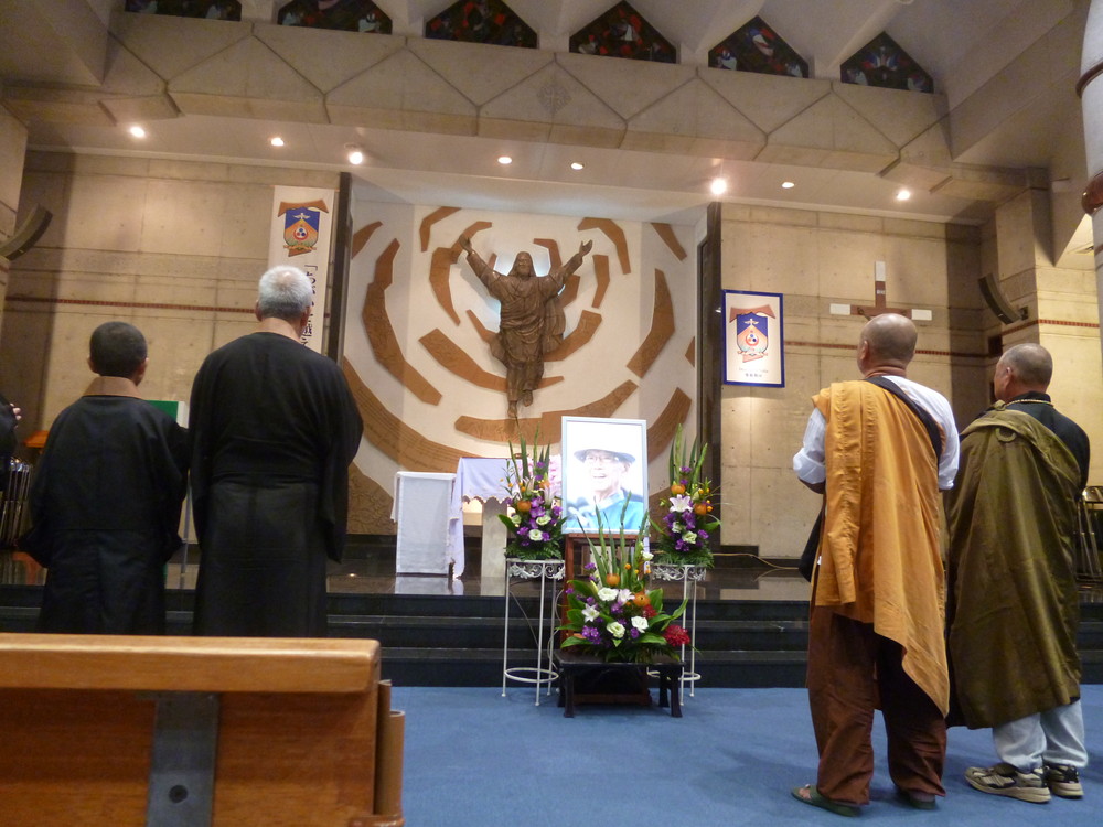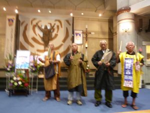 会場となった那覇市安里のカトリック教会に、キリスト者をはじめ、仏教、沖縄の神人(かみんちゅ)など300人が集った。