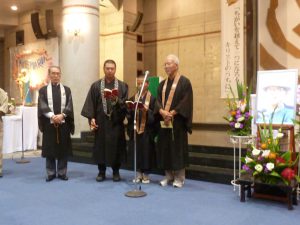 四十九日なので、まずは宗派を超えた仏教の方々が読経、お題目を唱え、祈った。