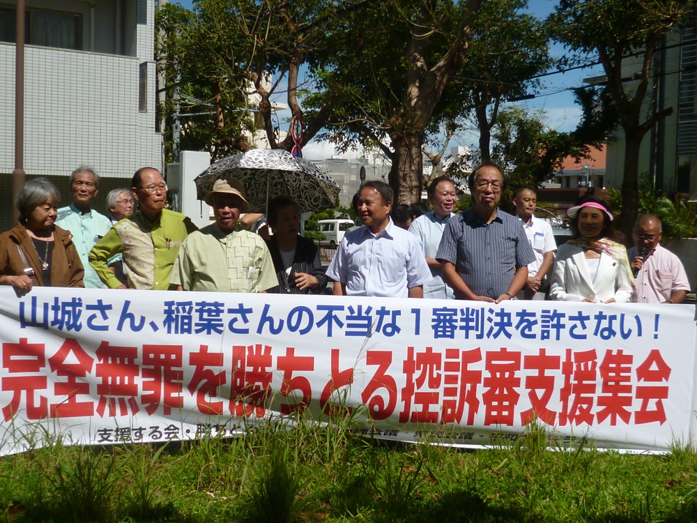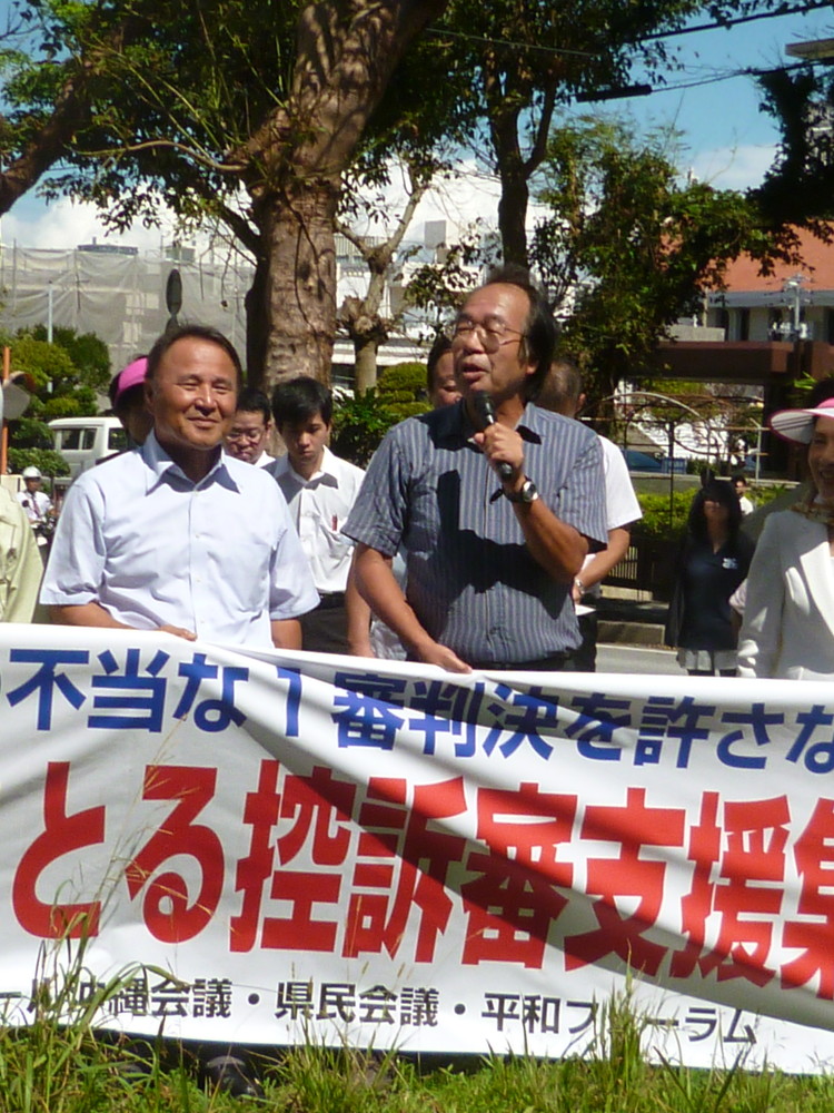 辺野古新基地建設に反対してゲート前で行動中に弾圧逮捕され、一審で有罪判決を受けた山城博治さん、稲葉博さんの控訴審が、昨日(16日)から始まった。
