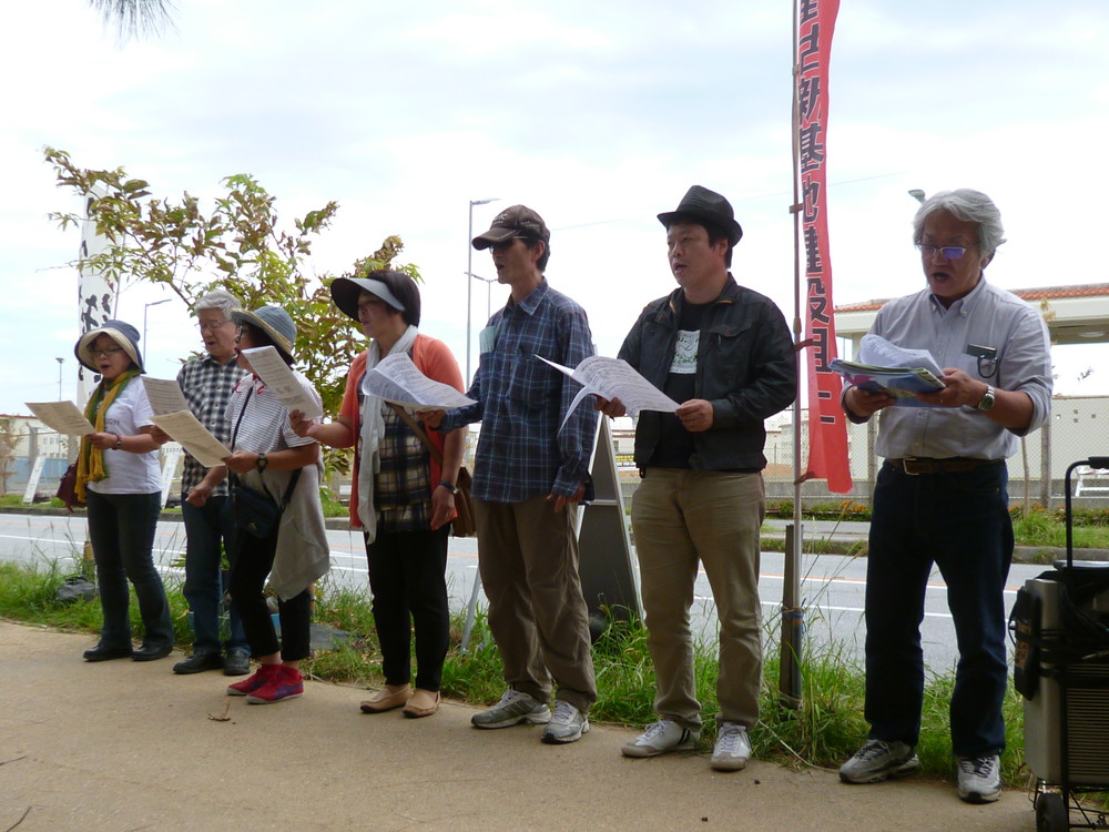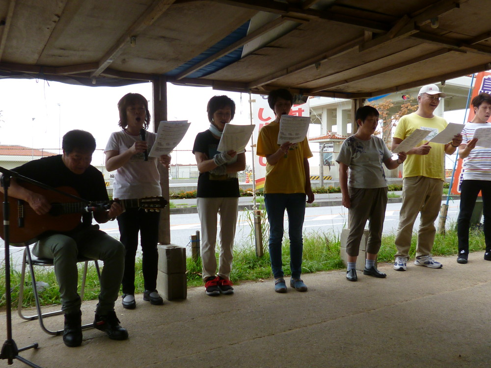 名古屋からは歌声サークルの皆さんが14名で参加、辺野古をテーマに作曲された歌を披露した。