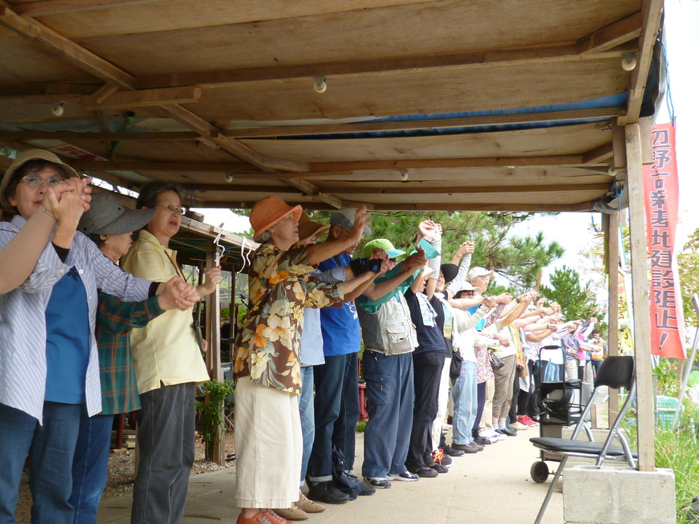 京都から沖縄は初めてという看護師さん(女性)は「ニュースでは知っていたが、実際に沖縄に来てみて、いかに沖縄の皆さんに多くの負担をかけ、苦しみを与えているか、実感した」と、涙を流し「これからどうすれば全国の人たちが、沖縄の状況に関心を持ち、連帯できるか、自分にできることを取り組みたい」と声を詰まらせながら語った。