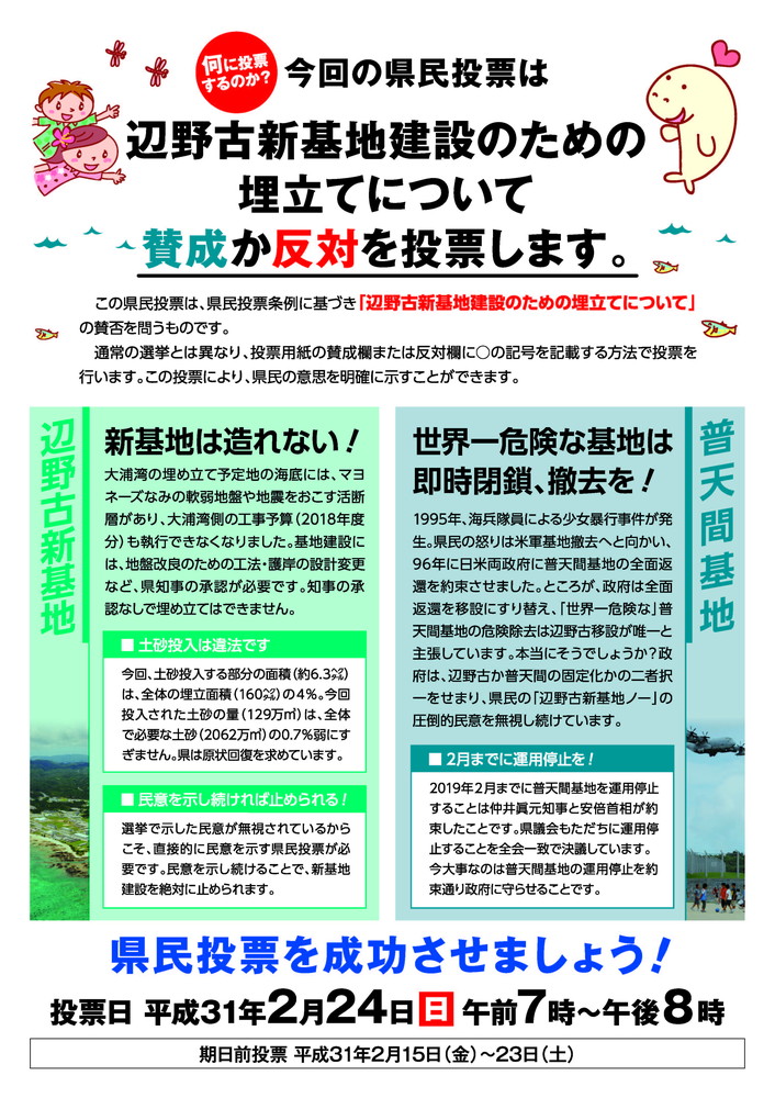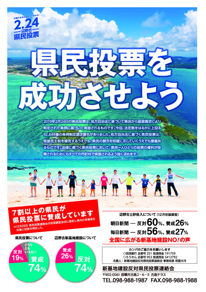 安部政権の意を忖度する自治体が、県民投票つぶしに躍起になっている。宮古島市、宜野湾市、沖縄市、うるま市、石垣市が県民投票の不参加を表明した。