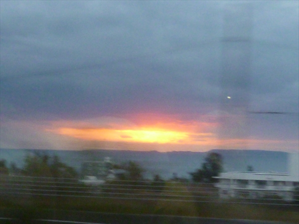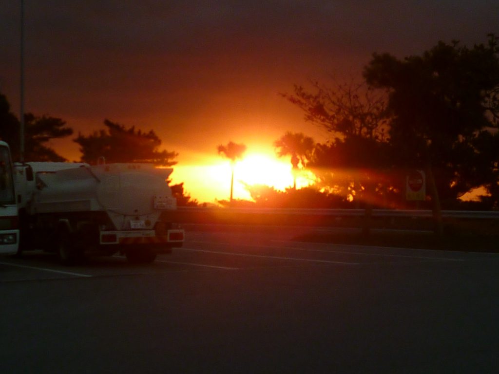 6:30まだ真っ暗な中、那覇を出発。高速道路(沖縄自動車道)の中城を過ぎたあたりから日の出の気配がしてくる。