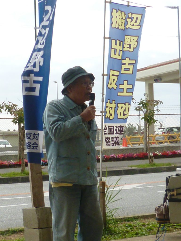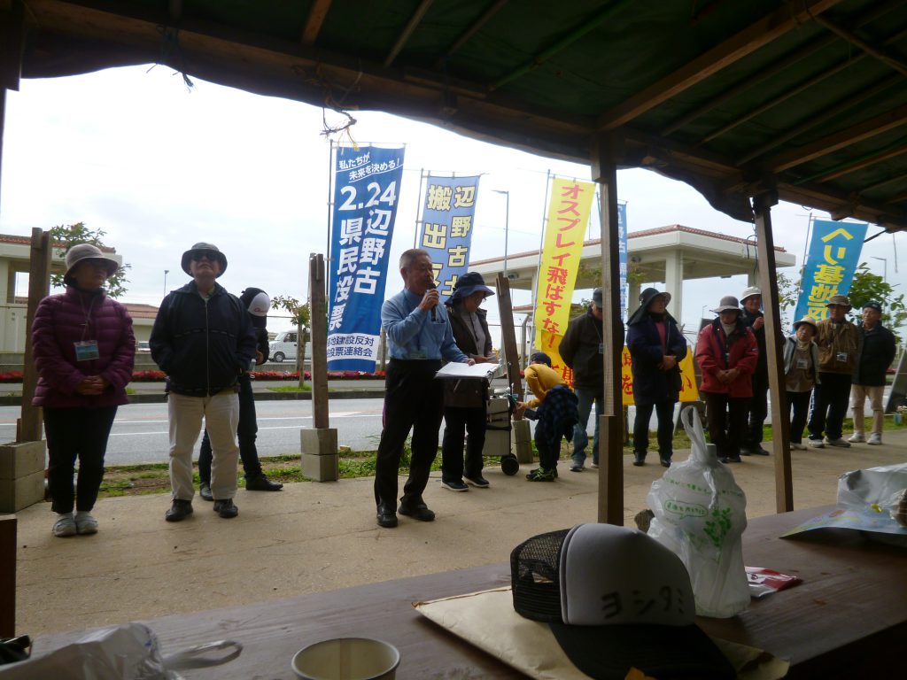 今日は工事用ゲートからのトラックによる土砂の搬入はないとの判断で、11時前にはテントに移っての集会に切り替えられ、参加した各島ぐるみやグループから地域での活動報告が行われた。