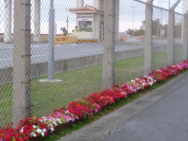 フェンス沿いのプランターの花が、植え替えられて色鮮やかに元気を取り戻していた。