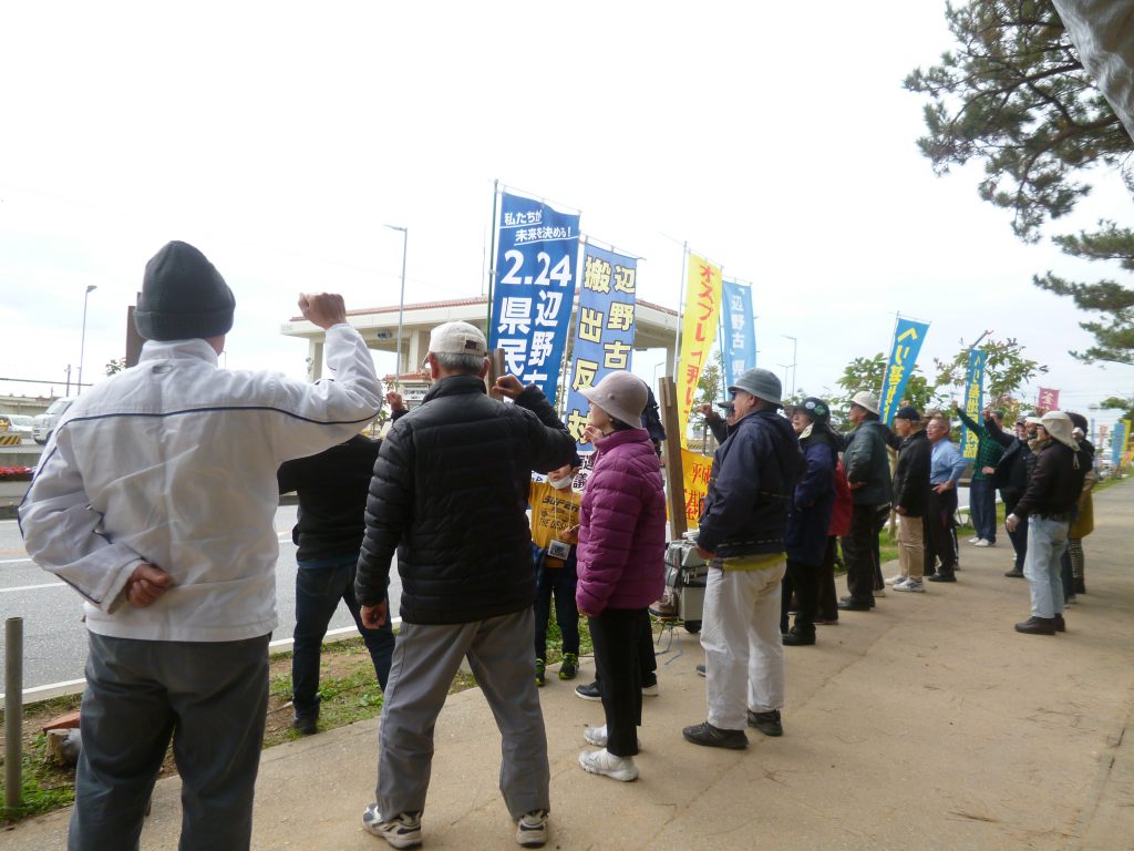 ゲート前行動は正午に終了。平和市民連絡会と那覇島ぐるみのバスは、午後1時半から那覇で行われた辺野古新基地反対県民投票連絡会の「那覇総支部大集会」に合流した。