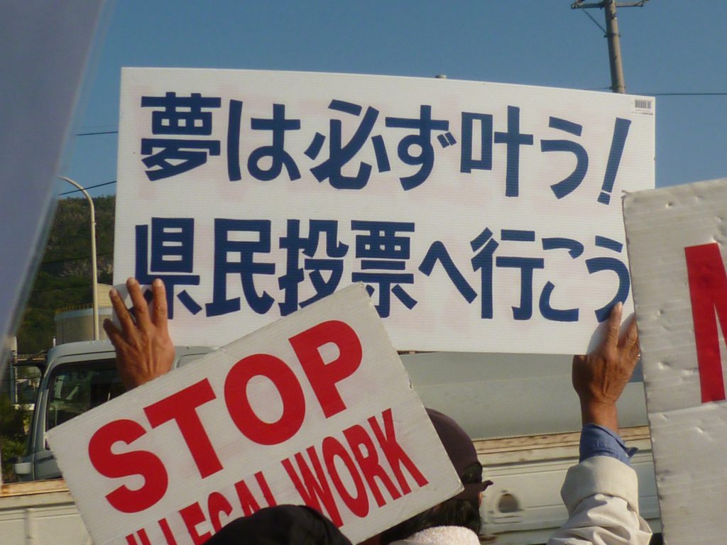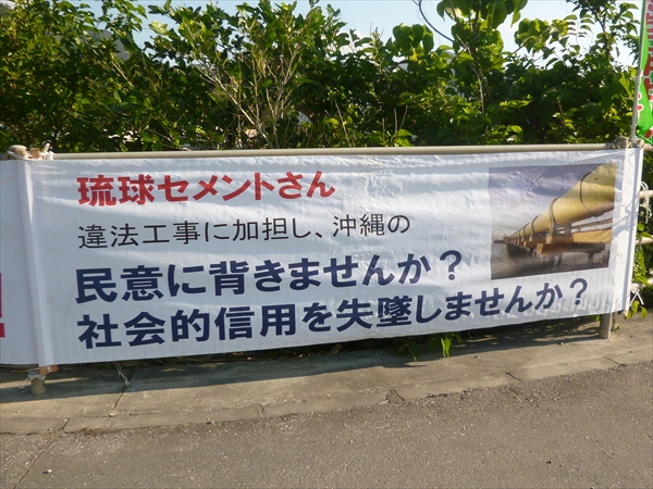 この隣には「琉球セメントさん、県民を裏切らないでください」と書いた大きな横断幕が掲げられていた。