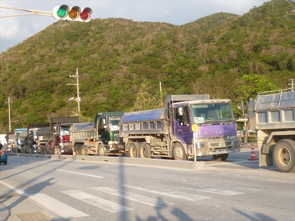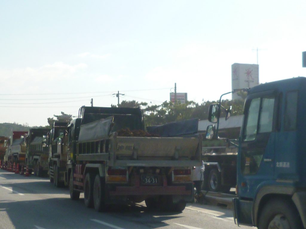 沖縄防衛局は「岩ズリ」と言い張っているが、トラックが運んでいるのは、どう見ても赤土である。
