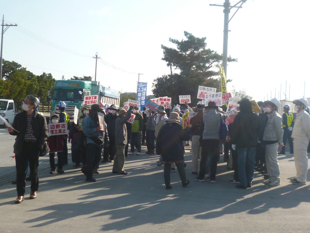 今月から毎週水曜日は、法を犯して辺野古埋め立ての土砂搬出港になってしまった琉球セメント安和桟橋への集中行動日となっている。