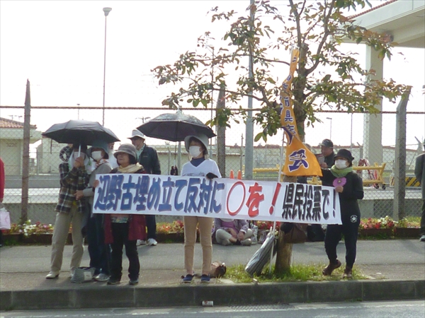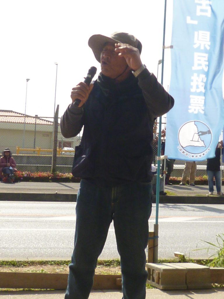公明党のとりなし、「賛成」「反対」の2択から、「やむをえない」を加えての3択への妥協案を受けて新里県議会議長、特に全県実施に向けて玉城デニー知事が強力なリーダーシップを発揮したと、今日の辺野古の集会では、5市の市民代表から、さまざま裏話が披露された。