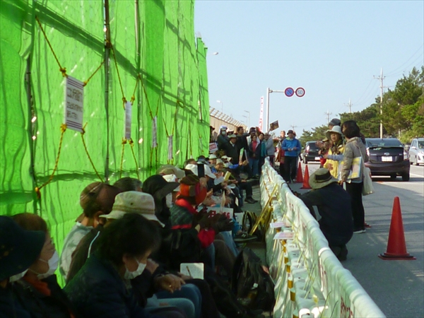 10時過ぎ、今日は全島駅伝大会があり、辺野古ゲート前の県道もコースに入っていることから、土砂の搬入はないことが判明。集会に向けて、テントに移動した。