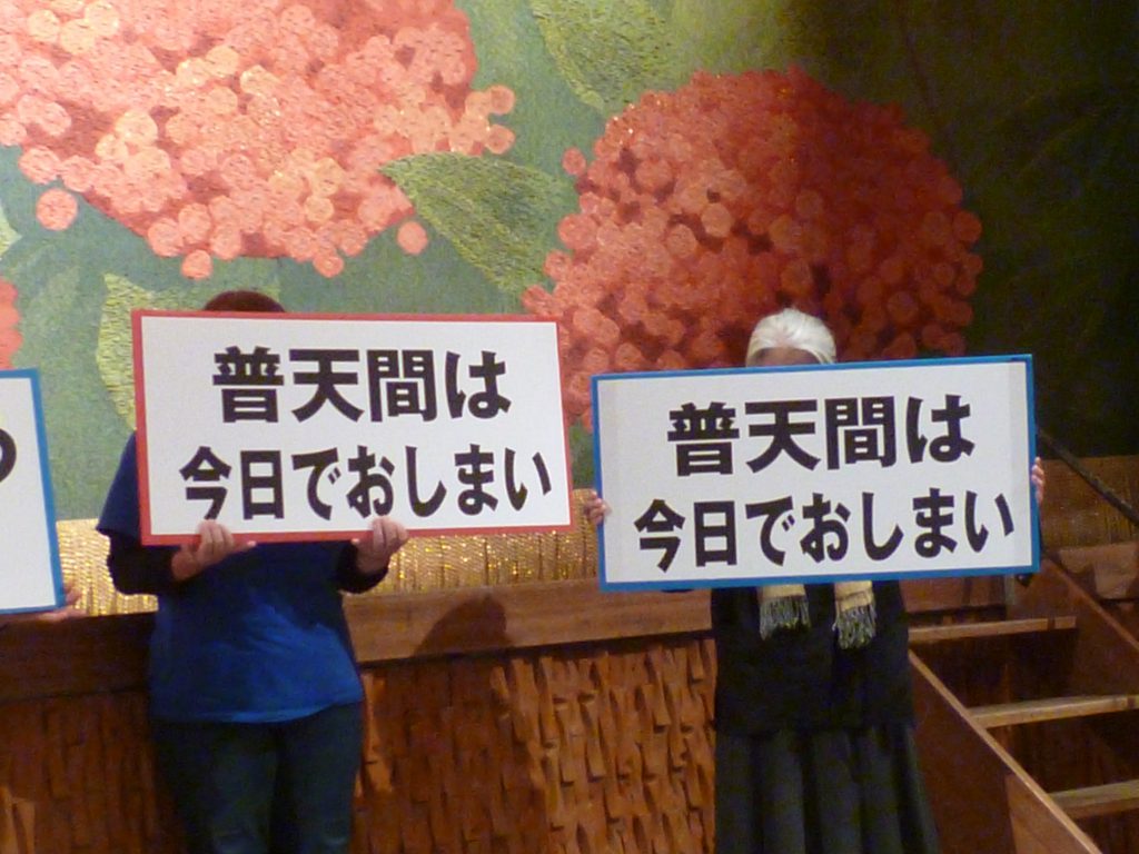 知事選挙で話題になった創価学会のメンバーも三色旗を手に壇上へ。かつて池田名誉会長が沖縄に寄せた平和のメッセージを読み上げ「改めて創価学会の皆さんに訴えたい。県民投票で「反対に〇」をつけることが、学会の理念に添うことであり、池田会長の平和への思いを実現することである。皆さん一緒に頑張りましょう」と呼びかけた。