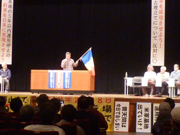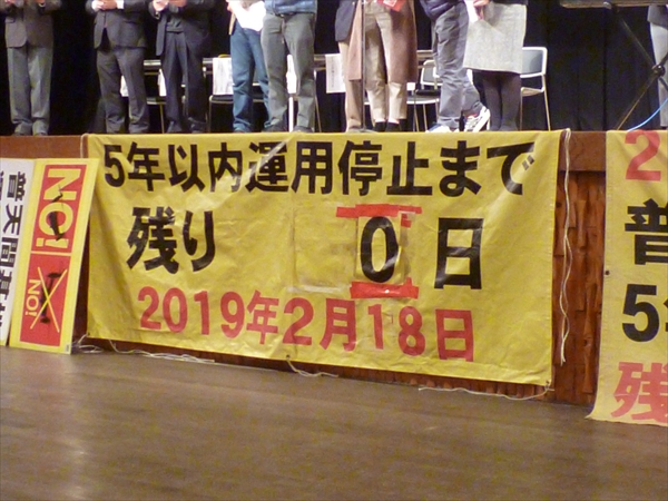 大会では、あいさつで壇上に上がった人たちは口々に「アメリカは、5年以内運用停止の話など、日本政府から一度もない,と言っている」