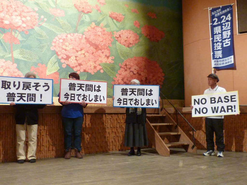 「移す先(辺野古)があるから、あってはならない違法な普天間基地は暫定使用が許されている。辺野古をやめさせることが、普天間を一日も早い運用停止につながる」