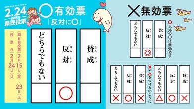 さあ!ラストスパートだ ~ 県民投票を成功させよう ⑮ いまだに「反対なのに、なぜ〇なの?」という人たちがいて、投票用紙への記入ミスが懸念されている。また、思い余って、〇を◎にしたり、賛成の欄に✖をつけたりすると無効票になるので、注意しなければならない。 そして、最大の懸念は投票率。選挙と違って地縁血縁や義理などのしがらみが薄い分、天気が悪かったり、体調に不安があったり、別の用ができたりすると、簡単に棄権する可能性もある。 辺野古新基地に賛成の人も反対の人も、まずは投票に行きましょう!期日前投票も 沖縄~平和のメッセージ 2019年2月23日unaiリンクURL この記事を共有する → Tweet Pin It