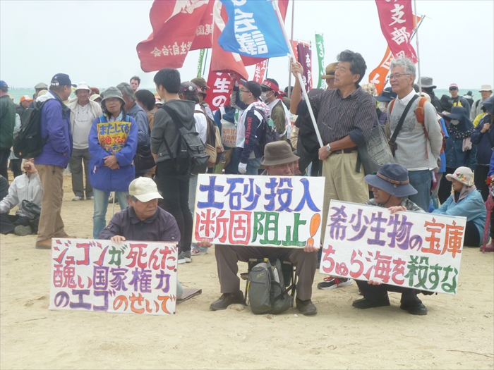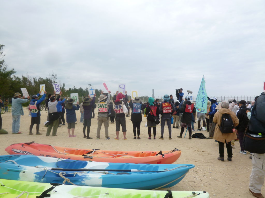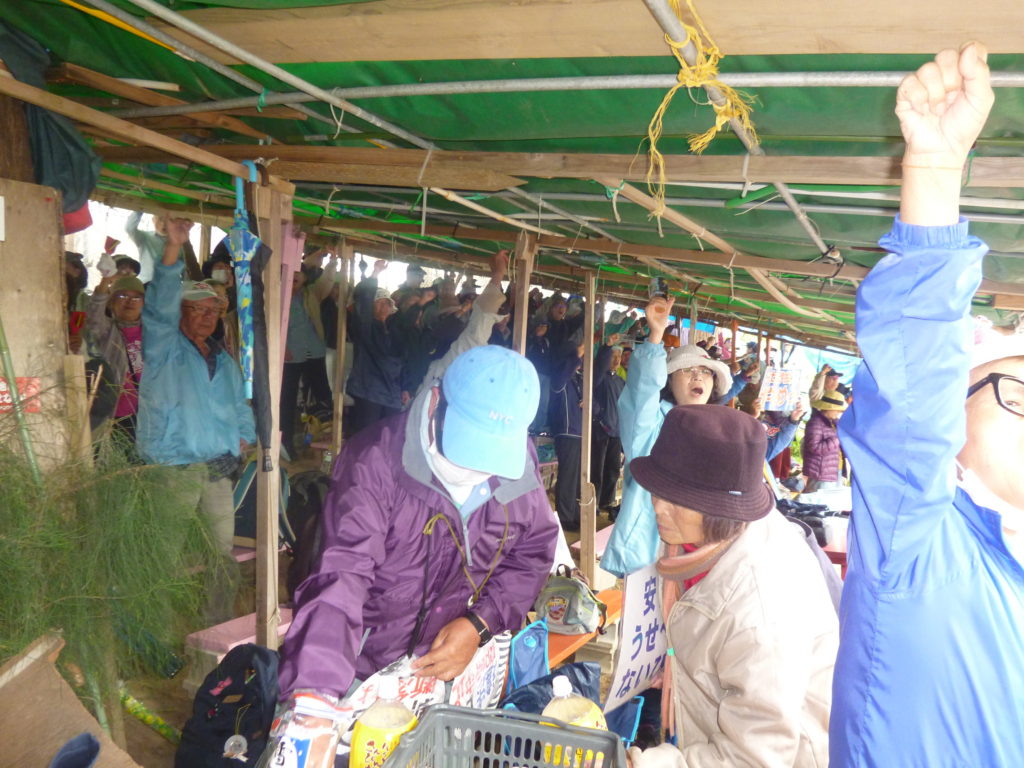 浜での集会が終わった後ゲート前のテントに戻ると同時に「14時28分、土砂投入が始まった」と情報が伝えられた。無念!