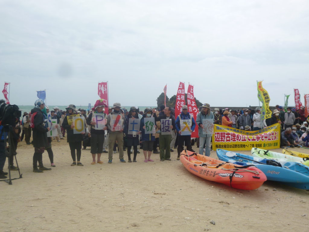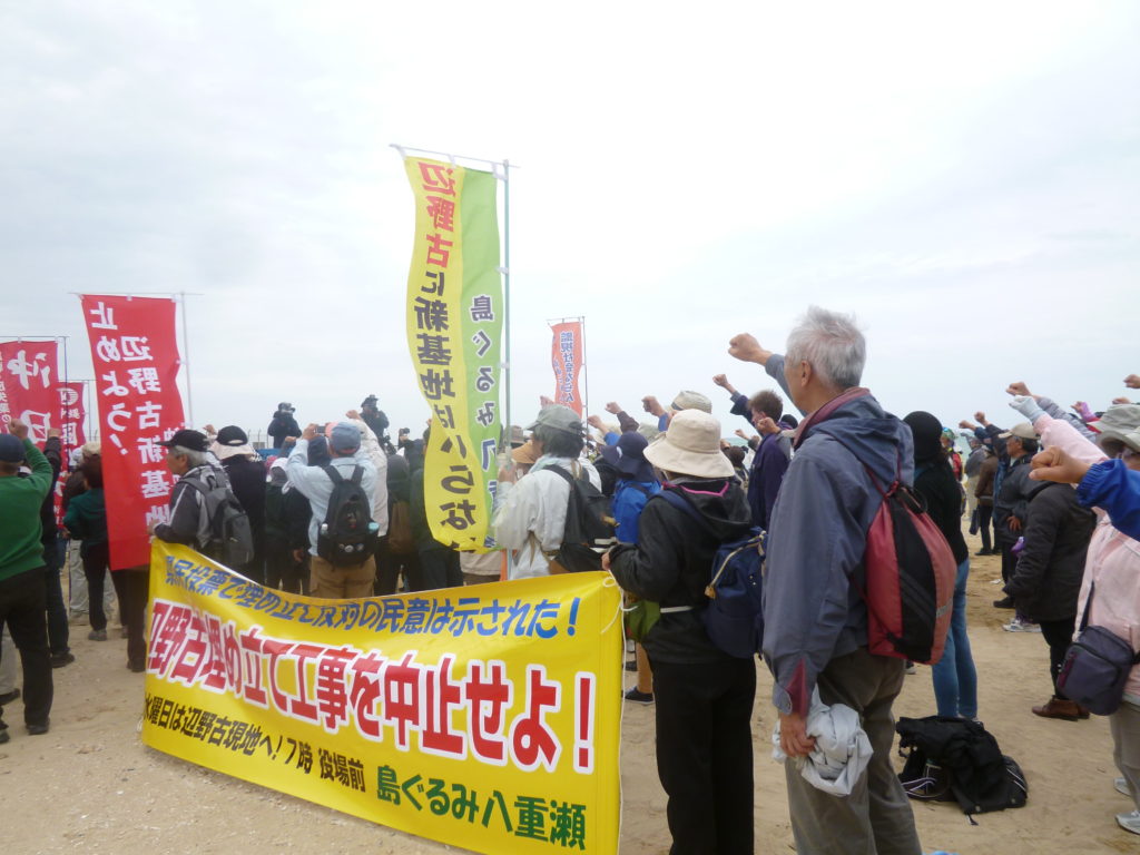 県民投票で示した圧倒的民意を無視し強引に埋め立てを進める安倍政権に対して抗議するため、辺野古ゲート前と浜、そして海上で1000名近くの県民が怒りの声を上げた。