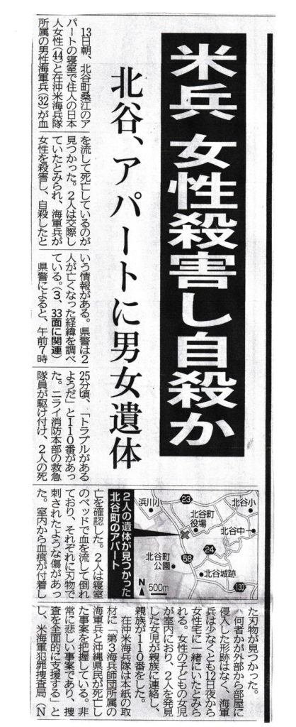 またもや米兵による女性殺人事件が起こった。基地あるが故の事件、事故の多発。やりきれない思いで胸が痛い。