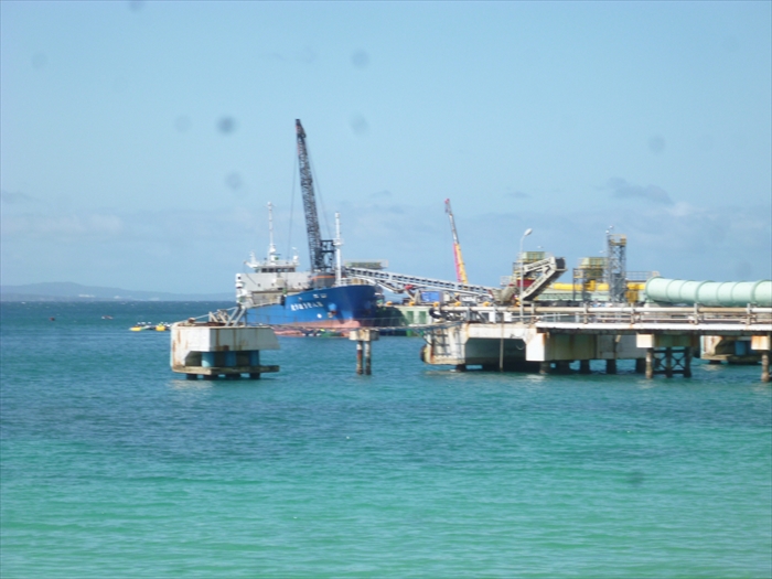 いつもより1時間半以上遅れての到着だったので、沖では、ベルトコンベアーで、運搬船へ土砂の積み込みが、すでに始まっていた。