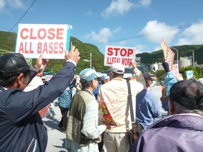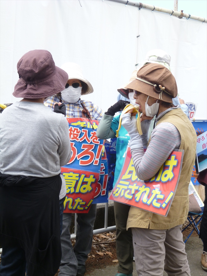 早速、抗議行動の輪の中へ。今日も、県外から参加の方々が多い。