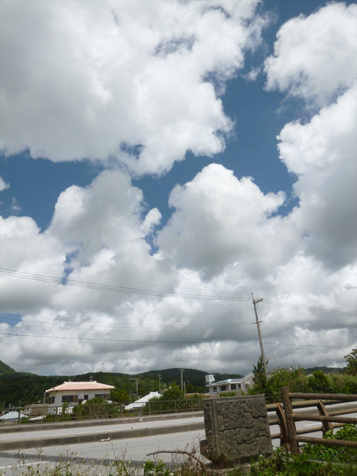 見上げると、空はモクモクの入道雲を浮かべて、すっかり夏の顔をしていた。雲の向こうには辺野古ブルーに澄み渡る青い空が見える。初夏を通り越して一気に夏に向かう気配である。