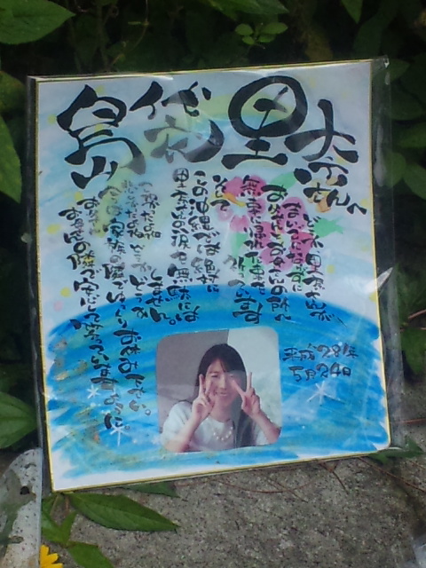 女性の遺体が遺棄された恩納村安冨祖の現場では、命日にあたるこの日、有志によって献花台が設けられ、多くの人が手を合わせに訪れたという。