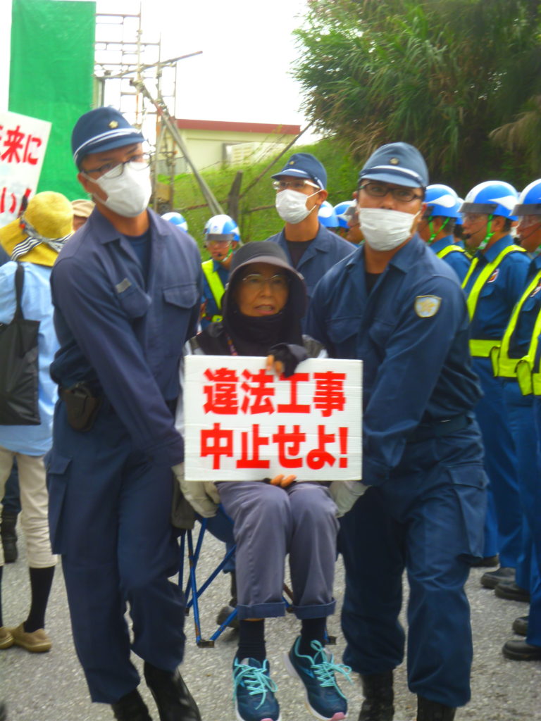 平和市民連絡会は今日(水曜日)は辺野古の担当だ。9時前の第一回搬入の前に30数名が座り込んだ。